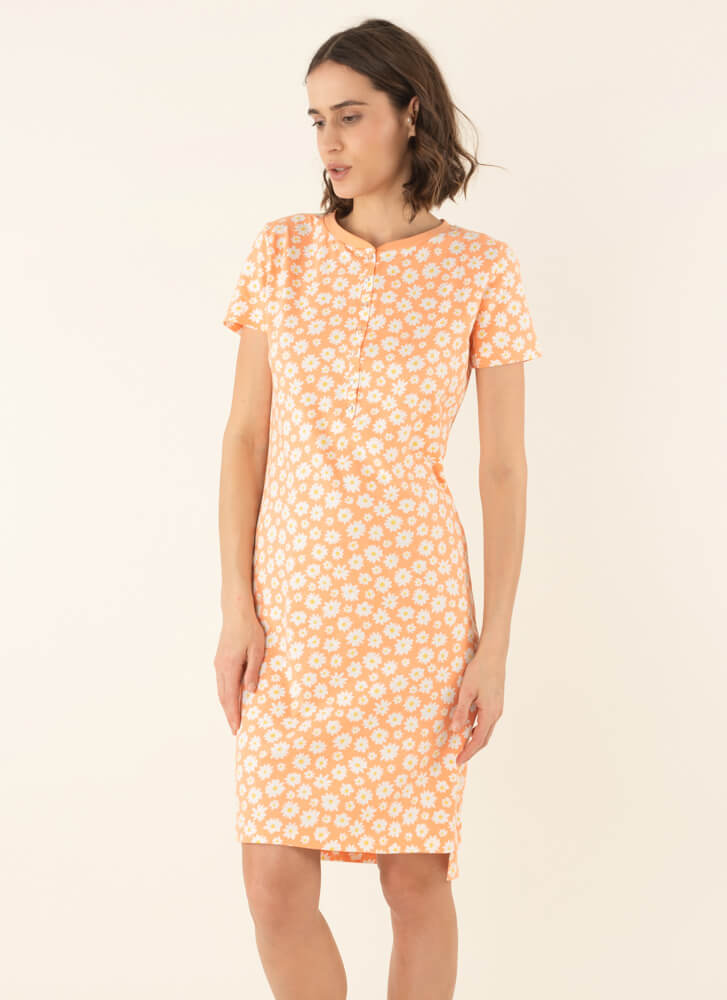 Ženska spavaćica kratkih rukava sa dezenom belih rada deo je naše Basic kolekcije. Spavaćica je izrađena od 100% pamuka premium kvaliteta što je čini veoma udobnom i prijatnom za nošenje. Poseduje dugmiće i mogućnost raskopčavanja, što je čini idealnom i za porodilje.
