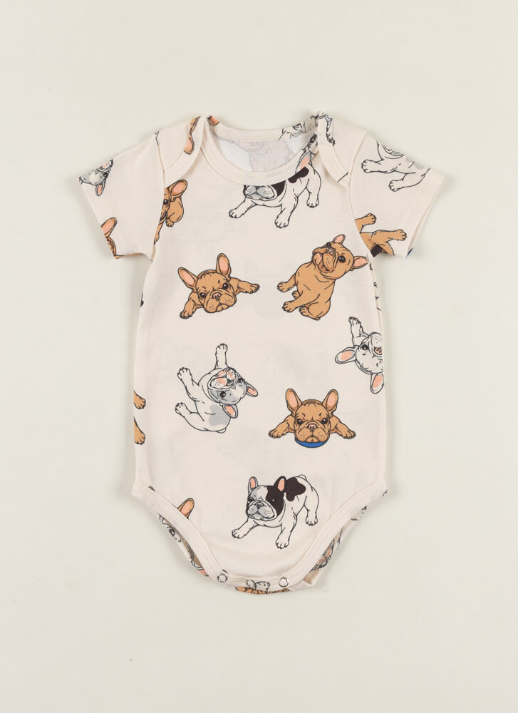Beli bodi kratkih rukava za bebe dečake sa dezenom buldoga deo je istoimene Bulldog kolekcije. Skrojen je od 100% najfinijeg pamuka, koji prianja uz nežnu bebinu kožu i pruža joj maksimalni komfor i lagodan osećaj. Lepo se uklapa uz druge modele iz iste kolekcije.